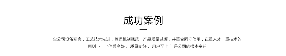 全公司設(shè)備精良,管理機制規(guī)范,產(chǎn)品質(zhì)量過硬,并重合同守信用,在重人才,重技術(shù)的原則下,“信譽好 、質(zhì)量標(biāo)準(zhǔn) 、用戶至上 ”是公司的根本宗旨。公司上下,團結(jié)一致,把不斷完善并持續(xù)改進(jìn)質(zhì)量管理體系作為公司永恒的追求。